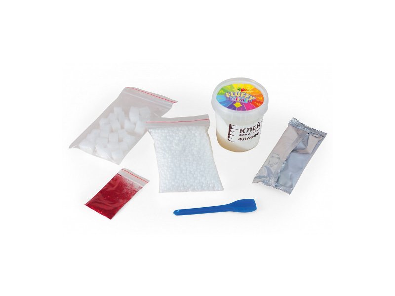 Готовый слайм - это игрушка с эффектом "антистресс". Лаборатория содержит клей, активатор с ароматом и цветом, два наполнителя, блестки и ложечку для дозации наполнителей и смешивания.