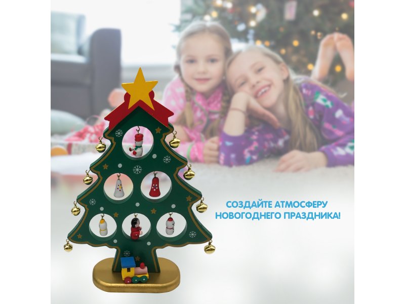 Сама елочка сделана из качественного дерева и уже покрыта зеленой краской. Деревянная елочка способствует развитию воображения, мелкой моторики и аккуратности у ребенка. Собирать можно как одному, так и компанией.