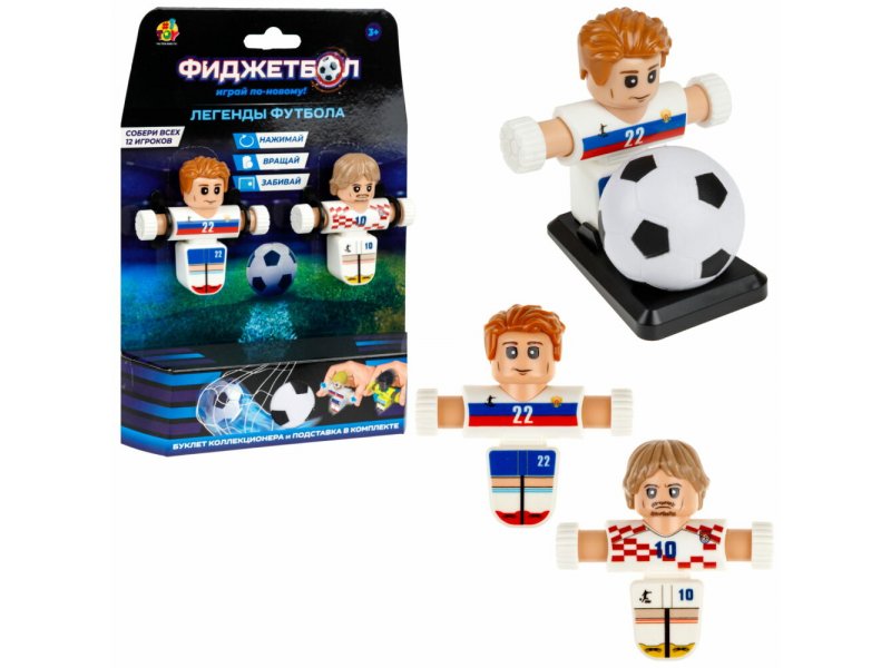 Фиджетбол – играй по-новому! Фиджетбол: Легенды футбола Россия – Хорватия от бренда 1TOY – это напряжённое противостояние на поле мини-стадиона! Кто забьёт решающий гол? Управляй движениями фигурок и устраивай собственные футбольные баталии. Нажми на руки игрока, и он начнёт вращаться, бить по мячу ногами и делать эффектные движения. Такие игры способствуют развитию внимания, реакции и стратегического мышления. В комплекте 2 футболиста, мяч, 2 подставки и буклет коллекционера, где можно отмечать своих футбольных звёзд. Размер упаковки 22х16,5х4,5 см.