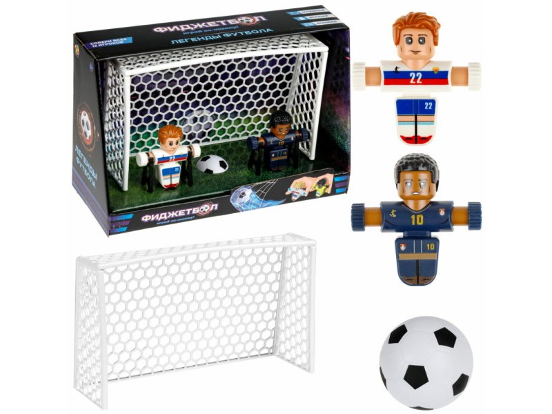 Фиджетбол – играй по-новому! Нажимай, вращай, забивай! Набор Фиджетбол: Легенды футбола Пенальти Россия – Франция от бренда 1TOY переносит игроков в момент истины – решающий удар по воротам! Один защищает, другой атакует, эмоции зашкаливают. Нажми на руки игрока, и он начнёт вращаться, бить по мячу ногами и делать эффектные движения. Управляй движениями фигурок, забивай невероятные мячи и наслаждайся игрой. Игра способствует развитию меткости, реакции и концентрации. В каждом наборе — буклет коллекционера для своих звёзд. В комплекте 2 футболиста, 2 подставки, 1 ворота, мяч и буклет коллекционера, где можно отмечать своих футбольных звёзд. Размер упаковки 18х28х11 см.