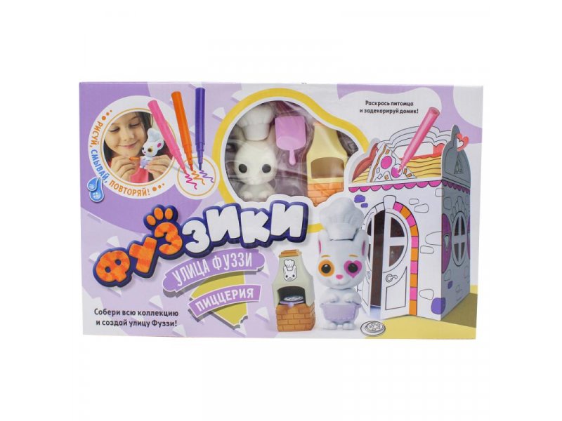 Набор игровой Фуззики Улица Фуззи Пиццерия. Фуззики - это милые питомцы, которых можно раскрашивать как тебе хочется! Фломастеры легко смываются водой, и ты можешь раскрашивать игрушки вновь и вновь, создавая каждый день новые образы для своего питомца.