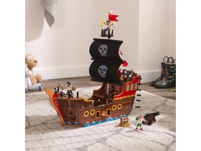 Набор для игры KidKraft Пиратский корабль рекомендуется для мальчиков и девочек. Возрастные рекомендации: от 3 лет. Он позволит маленькому непоседе увлекательно провести время, придумывая множество захватывающих сюжетов для игры. Пушка защитит форт в случае внезапного нападения. При нажатии на них слышны звуки выстрелов и светится огонь.