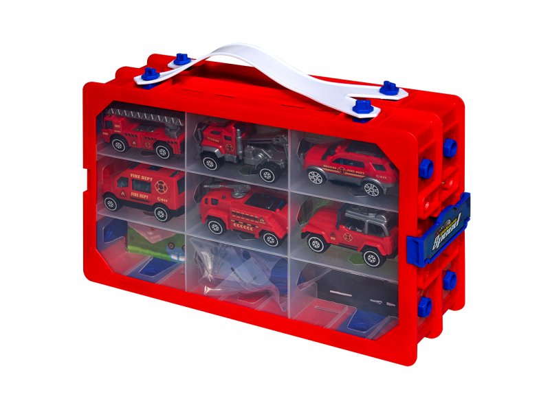 Набор включает 6 машинок в тематике «пожарная техника». Корпуса машинок выполнены из пластика, у машинок имеются подвижные детали. Благодаря входящему в комплект бумажному игровому коврику ребенок сможет придумать с машинками множество игровых сюжетов. Пластиковый чемоданчик с 18 отделениями сделает хранение и транспортировку машинок намного удобнее.