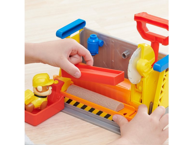 Крепыш самый активный и креативный лидер команды! Он всегда готов придти на помощь в нужную минуту! Смотри, какой Меганабор у него есть! Это целый станок, сколько здесь разнообразных инструментов: пила, дрель, поддон. С ними можно пилить, делить и пробивать отверстия, создавать новые формы. Просто используй песок в наборе для полноценной захватывающей игры! Размести кинетический песок на станке и продвигай его с помощью направляющего, чтобы делить брусок на части или пробивать отверстия.