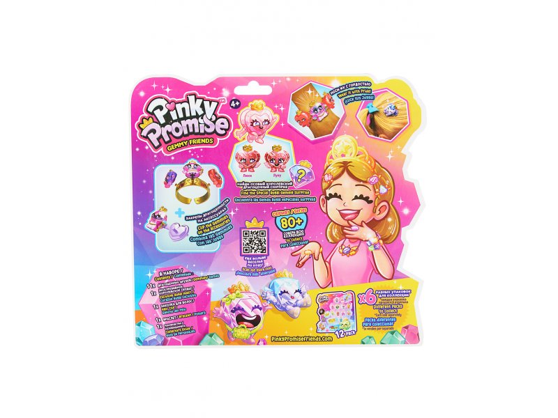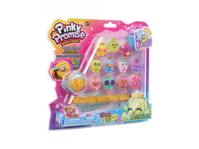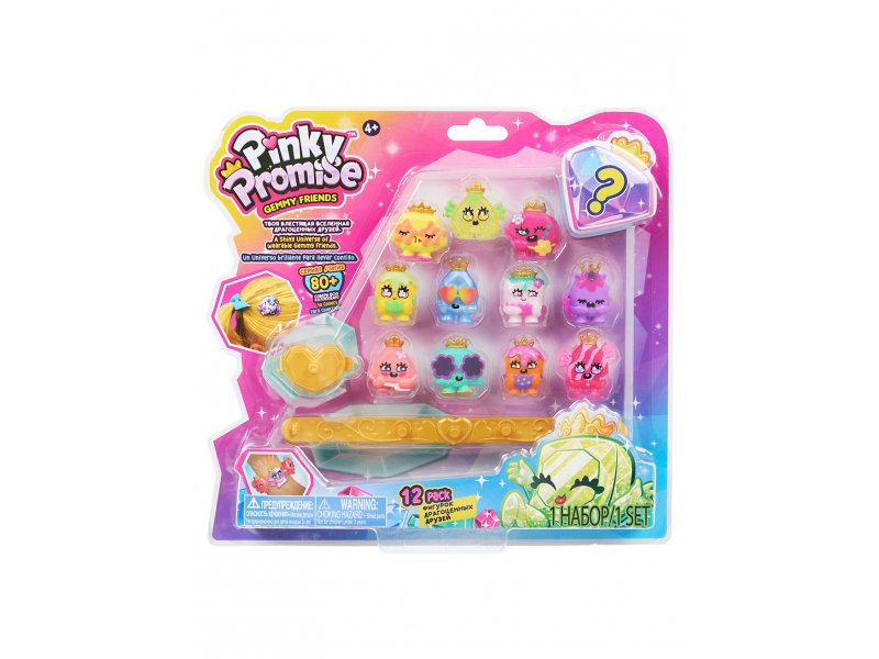 12 Фигурок (1 сюрприз) 11 персонажей 1 уникальный персонаж Аксессуары Размер фигурки 3 cm / 1,18” tall Состав набора: Фигурки персонажей (видны в блистере) – 11 шт Фигурка-сюрприз – 1 шт Браслет – 1 шт Заколка – 1 шт Буклет – 1 шт