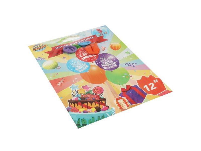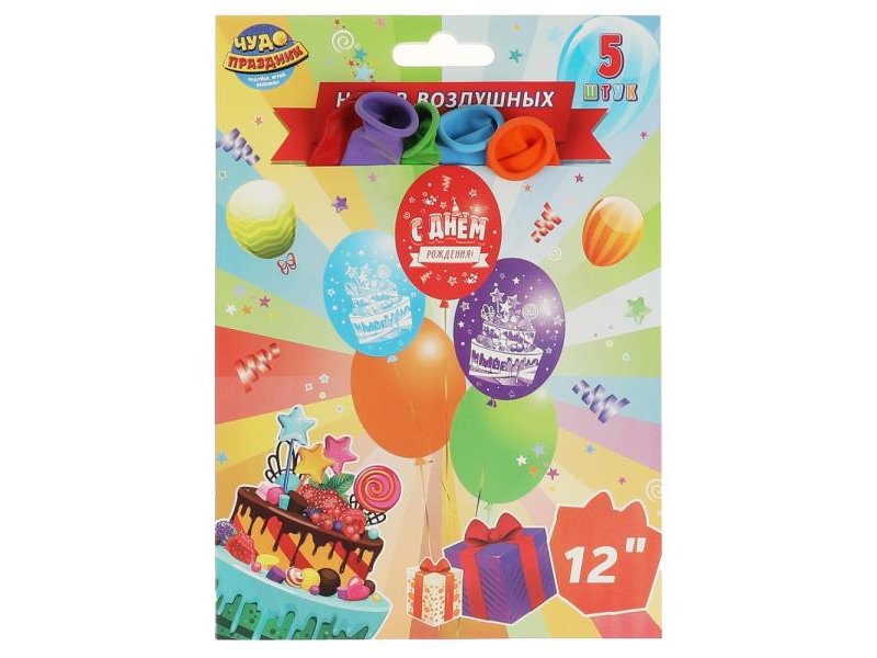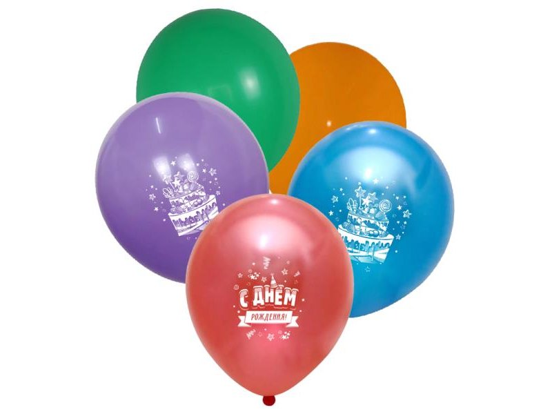 Набор латексных воздушных шаров Чудо Праздник С Днем Рождения монохром 5 шт