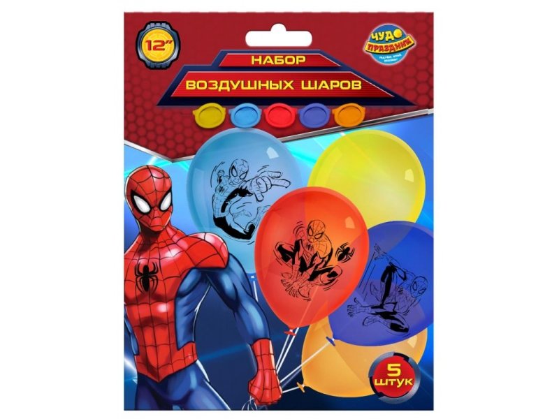 Набор латексных воздушных шаров Чудо Праздник Спайдермен монохром 5 шт