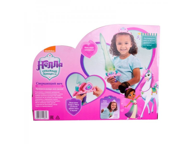 Комплект аксессуаров Неллы, в который входят голубой светящийся меч и тиара на голову, придется по вкусу каждой девочке, поклоннице мультсериала «Нелла – отважная принцесса». Набор состоит из небольшого меча голубого цвета с удобной для детской руки рукоятью и розовой тиары. Меч работает на батарейках, которые идут в комплекте. Тиару можно надеть на голову или присоединить к мечу для создания звуковых и световых эффектов. Дополнительные опции активируются одним взмахом меча.