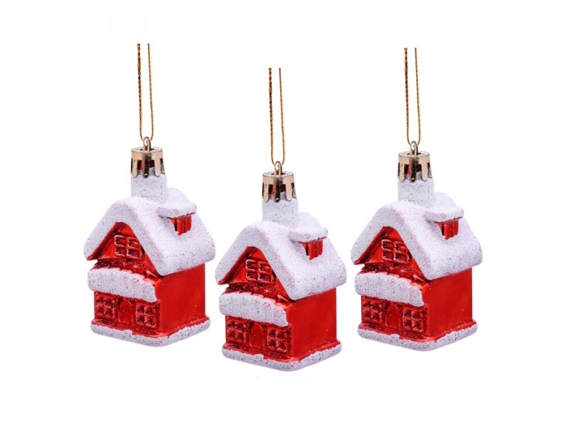 Набор новогодних украшений Снеговичок Рождественский домик, 6 см