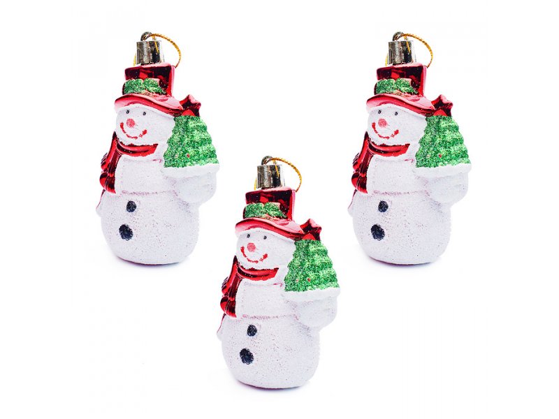Набор новогодних украшений Снеговичок Снеговик с елочкой, 9 см