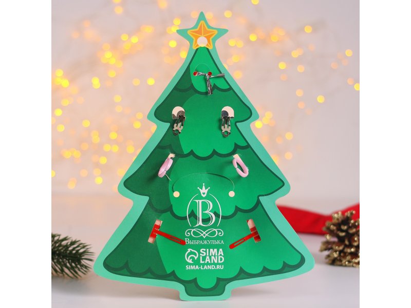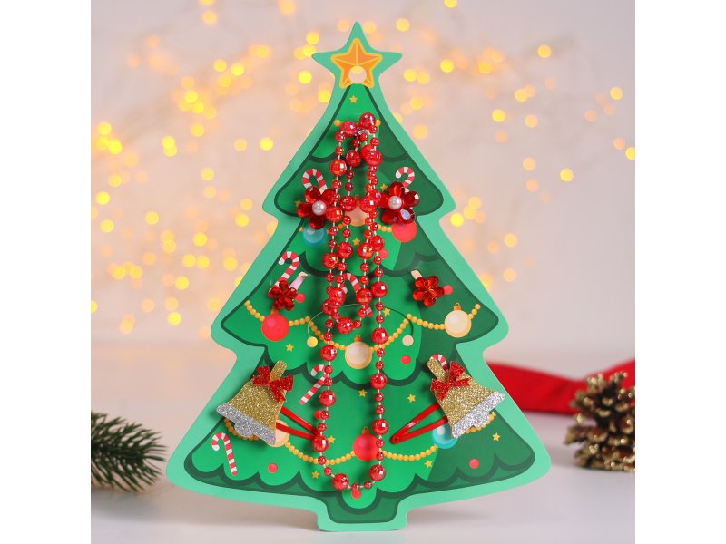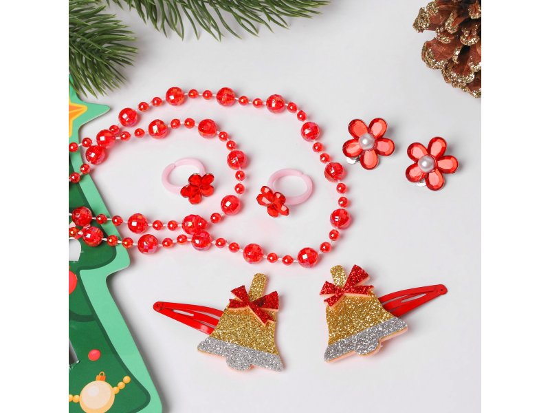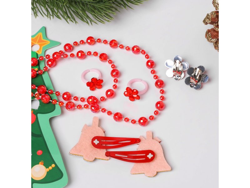 Набор новогодний Выбражулька (2 заколки, клипсы, бусы, 2 кольца, ёлка)