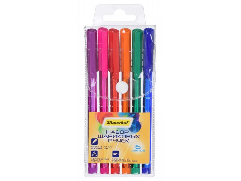 Набор шариковых ручек Silwerhof Солнечная коллекция, одноразовые, линия 1 мм, 6 цветов