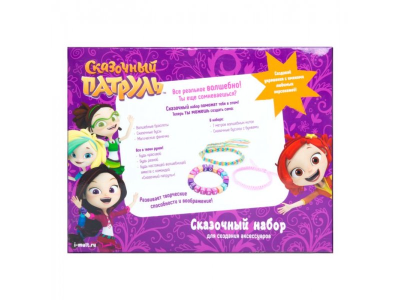 Так просто создавать невероятные украшения с набором для творчества Сказочный патруль! Из ярких бусин и ниток можно легко и быстро сплести фенечку, собрать браслет или бусы. Но самое главное - в комплекте есть разноцветные бусины с буквами, из них можно сделать украшение с надписью "Сказочный патруль" или именами девчонок.
