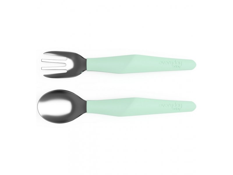 Комплект столовых приборов EveryDay Baby адаптированных под самостоятельное использование их ребёнком. В наборе - 1 ложка, 1 вилка. Набор необходимых столовых приборов для повседневного использования. Отсутствие острых деталей обеспечивает безопасность применения. Эргономичные ручки с самого начала формируют у малыша правильный естественный захват.