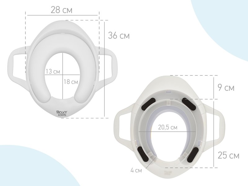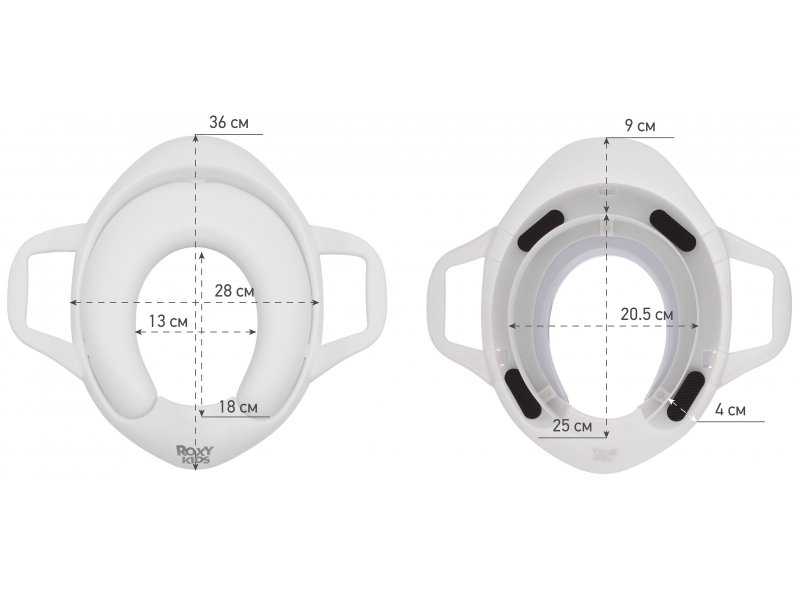 Адаптер для унитазов ROXY-KIDS с ручками в стороны поможет малышу привыкнуть ко взрослому туалету и обеспечит крохе необходимый комфорт.