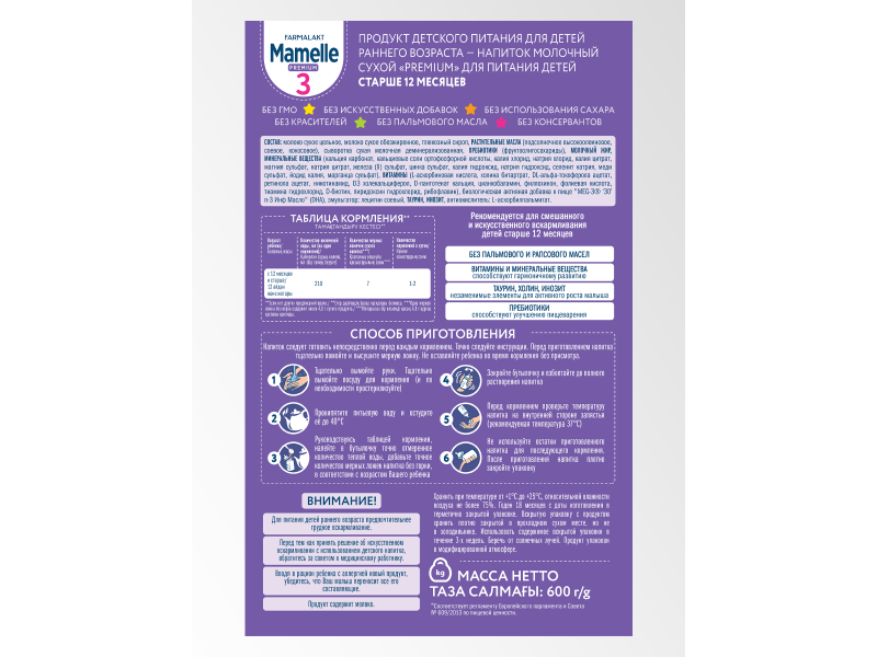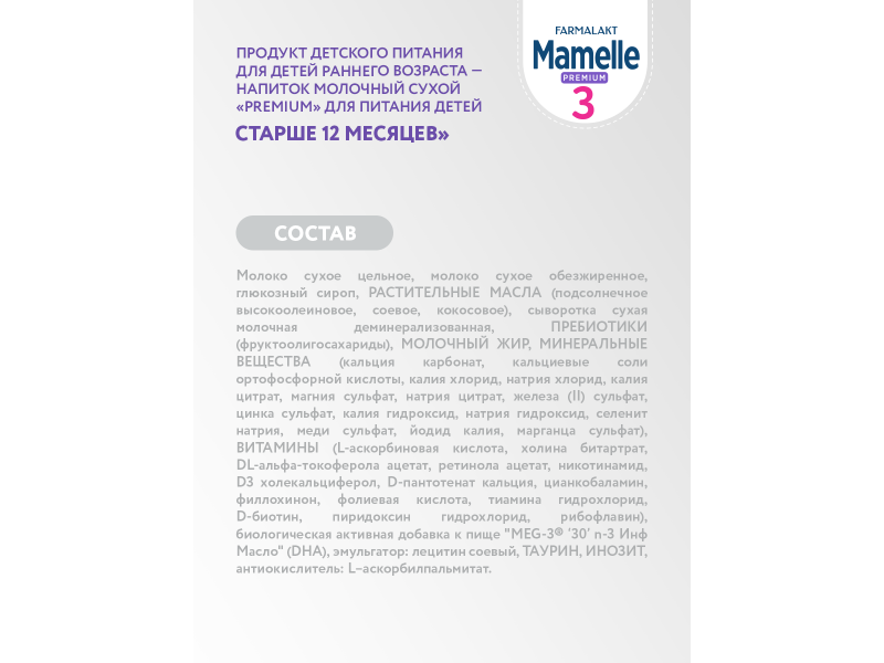 Напиток Mamelle Premium 3 молочный сухой, от 12 мес., 600гр