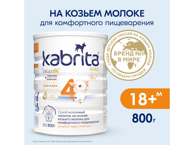Детское молочко Kabrita 4 Gold на козьем молоке для комфортного пищеварения, с 18 месяцев, 800 г
