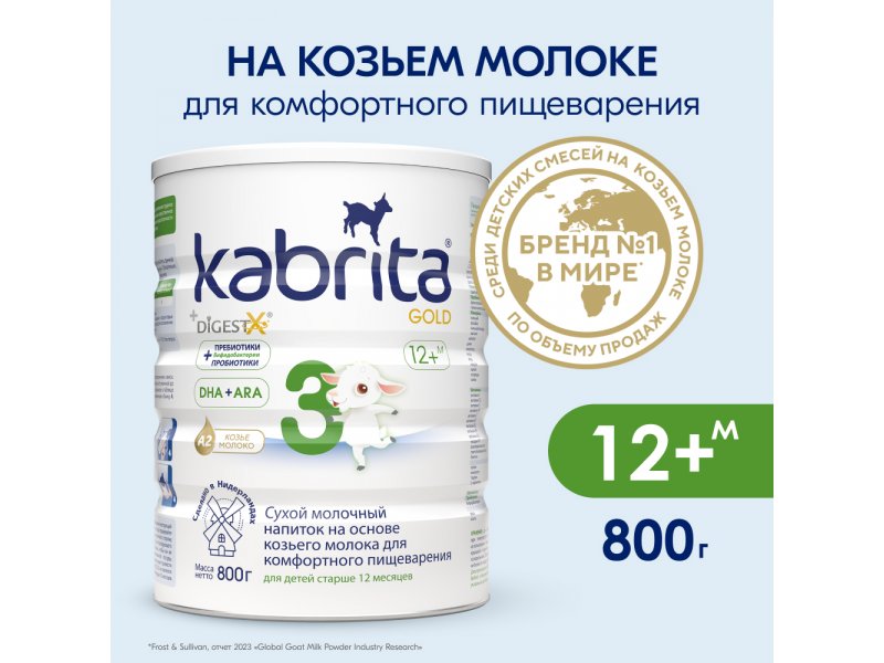 Детское молочко Kabrita 3 Gold на козьем молоке для комфортного пищеварения, с 12 месяцев, 800 г