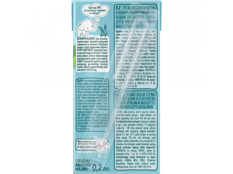 Нектар Фрутоняня Яблоко, слива с мякотью 200 мл