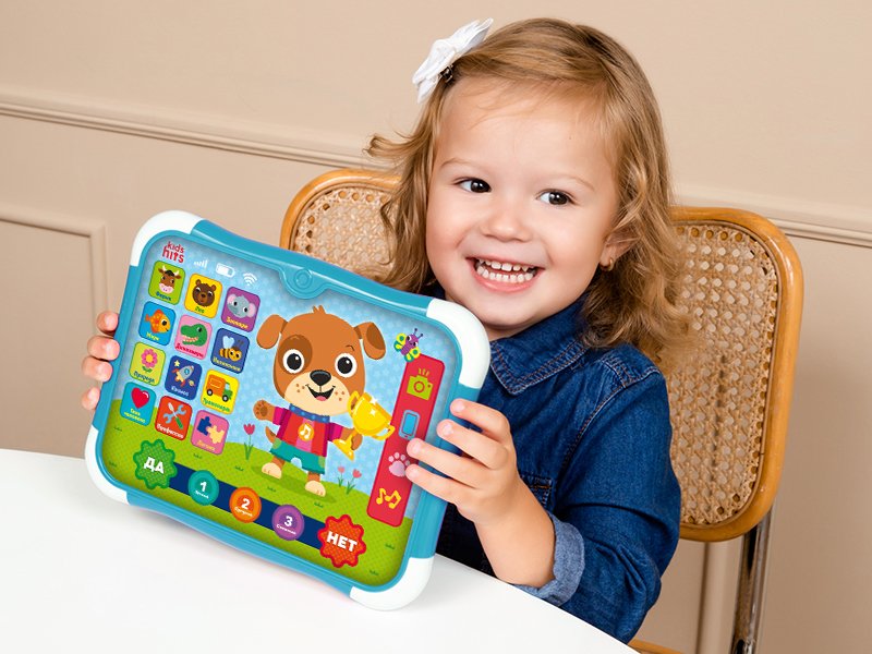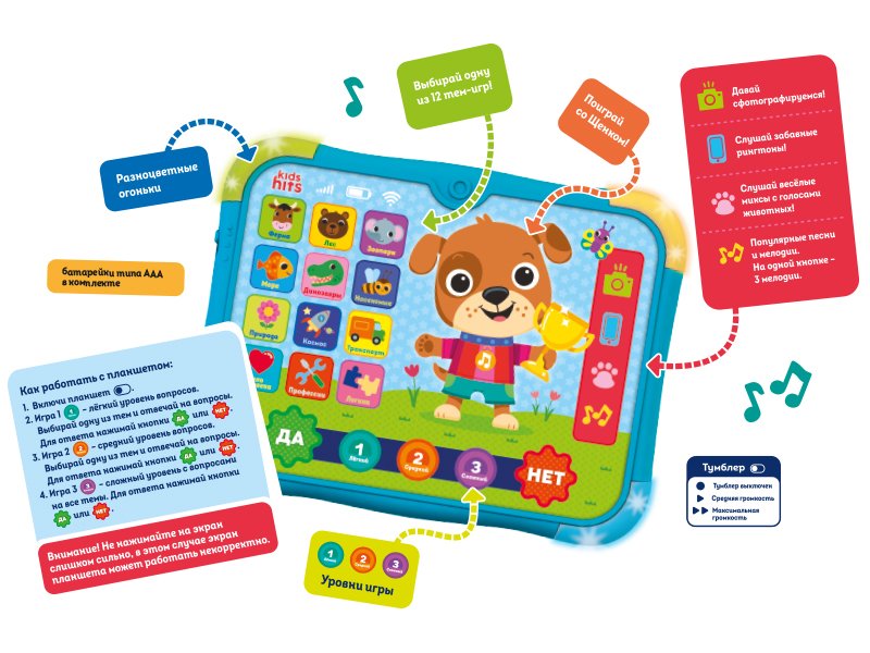 Пластиковая обучающая звуковая игрушка в виде щенка для раннего развития. Имеет ушки из ткани. - 26 фраз и мелодий