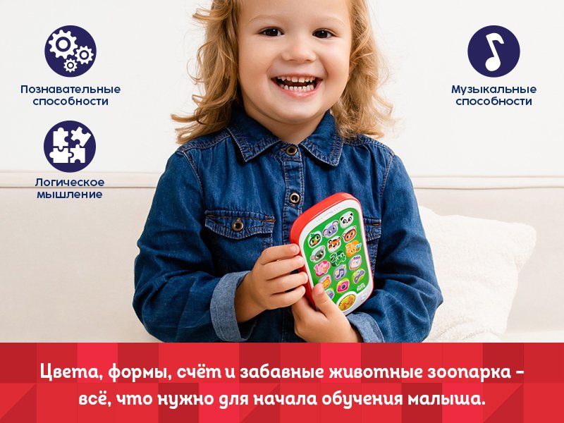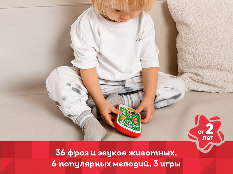 Пластиковая звуковая игрушка в виде телефона с образовательным контентом для раннего развития.