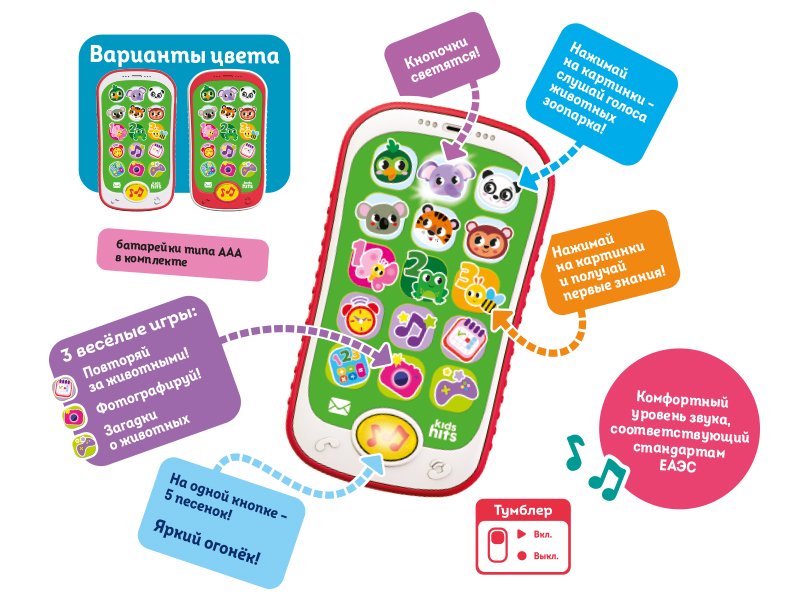 Обучающий телефон Kids Hits Смартфончик с огоньками Приходите в зоопарк