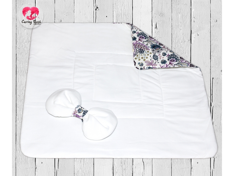 Мы предлагаем новую линейку одеял на выписку из 100% хлопка. Основа одеяльца нежная, как прикосновение мамы, поскольку внутри используется мягкий поларфлис. Он прекрасно термовентилируется, сохраняя сухие и теплые условия для малыша, поэтому он не перегреется и не переохладится. В качестве утеплителя для холодной погоды применяется наполнитель альполюкс, который по качеству сравним с натуральным пухом или овчиной. Особенная структура материала делает его невесомым и устойчивым к частым стиркам. Одеяльце имеет размер 1х1 м, что позволит использовать его со дня выписки и до 6 месяцев. К одеялу идет пояс на резинке, который придает эстетичность и придает форму одеялу. Он украшен флисовым бантом, сам же пояс крепится на липучку. Чтобы защитить вашего малыша от суеверий мы добавили в комплект несколько деревянных оберегов. Теперь любящая мама сможет оберегать свое дитя от всех напастей.