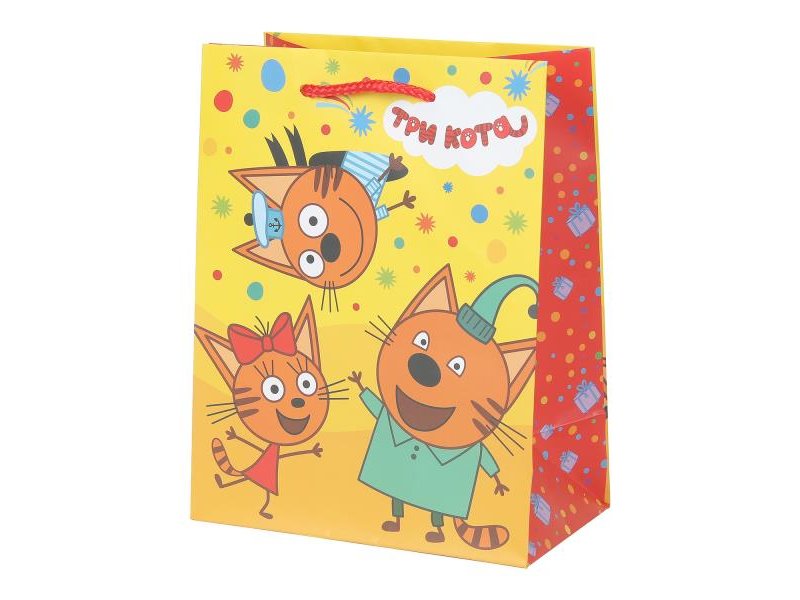 Подарочный матовый пакет «Три кота» ТМ «Чудо-праздник» станет отличным дополнением к вашему подарку и сделает его незабываемым: