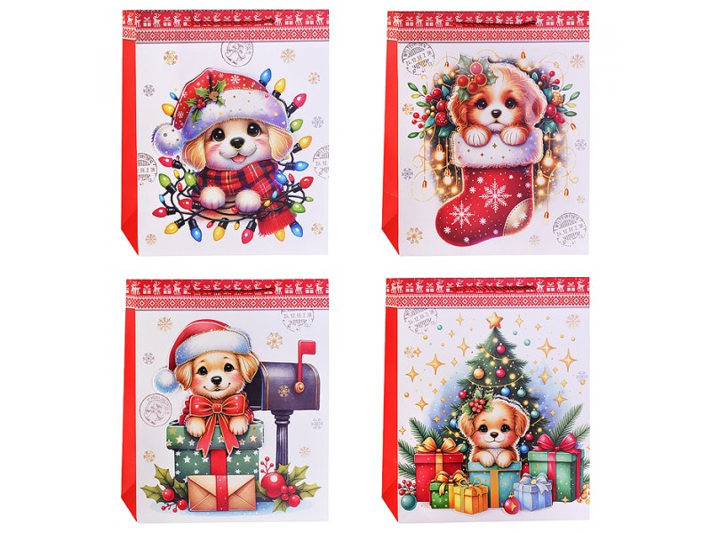 Пакет подарочный КНР Новогодний щенок 26*32*12 см