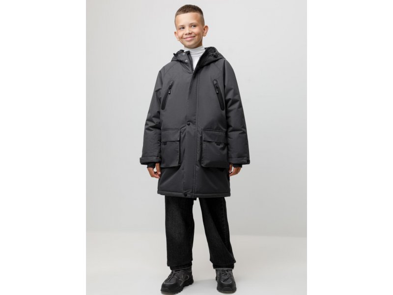 Зимняя парка для мальчика с утеплителем Fellex®: 300 г/м2. Выполнена из мембранной ткани с дополнительной тефлоновой обработкой, которая предохраняет изделие от загрязнений и отталкивает влагу. Подклад выполнен из 100% полиэстера Tricot. Парка застёгивается на молнию и внешнюю планку с кнопками, предусмотрена защита подбородка. Вшитый капюшон затягивается на эластичную утяжку со стопперами и на шнур. На рукавах внутренние эластичные манжеты, ширина регулируется липучками. Два накладных кармана с клапанами по бокам и два кармана на груди. По талии эластичная утяжка со стопперами. Во всех изделиях верхнего ассортимента для безопасности ребёнка предусмотрены светоотражающие элементы. Состав: верх: 80% полиэстер, 20% полиуретан; подклад: 100% полиэстер; Утеплитель: 100% полиэстер. Температурный ркежим: от -5º С до -30º С