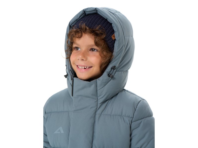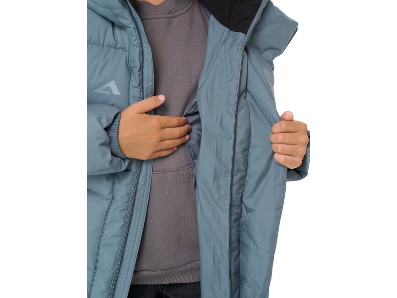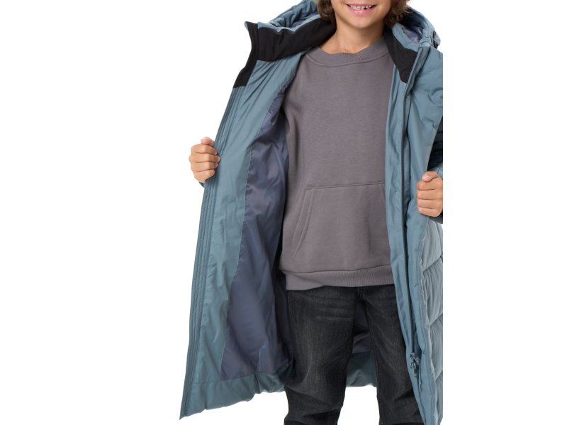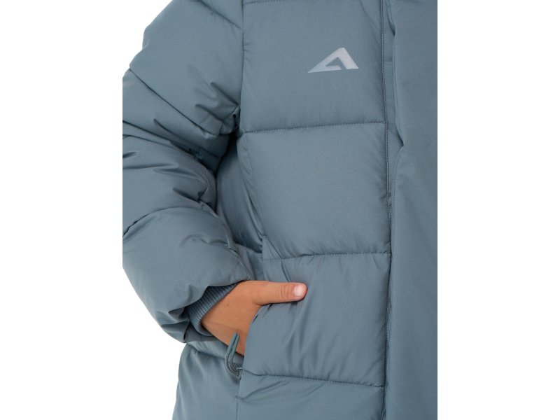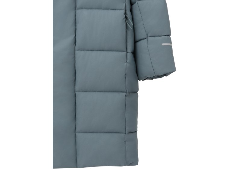 Его прямой силуэт и водоотталкивающая пропитка Teflon обеспечивают комфорт и защиту от непогоды. Мембрана 10к/10к гарантирует тепло и сухость, а искусственный лебяжий пух 300 г/м² согревает даже в сильные морозы. Двойная ветрозащитная планка и трикотажные манжеты защищают от ветра, а несъёмный капюшон с утяжкой и воротник-стойка с утеплителем создают дополнительный комфорт. Удобные боковые карманы и внутренний карман на молнии делают пальто практичным, а световозвращающие элементы обеспечивают безопасность в тёмное время