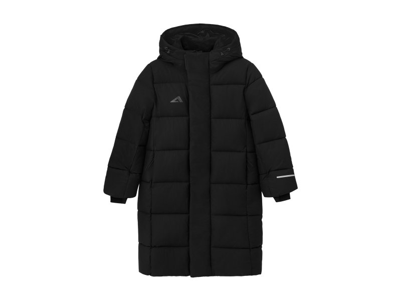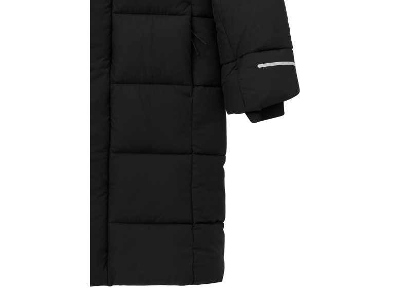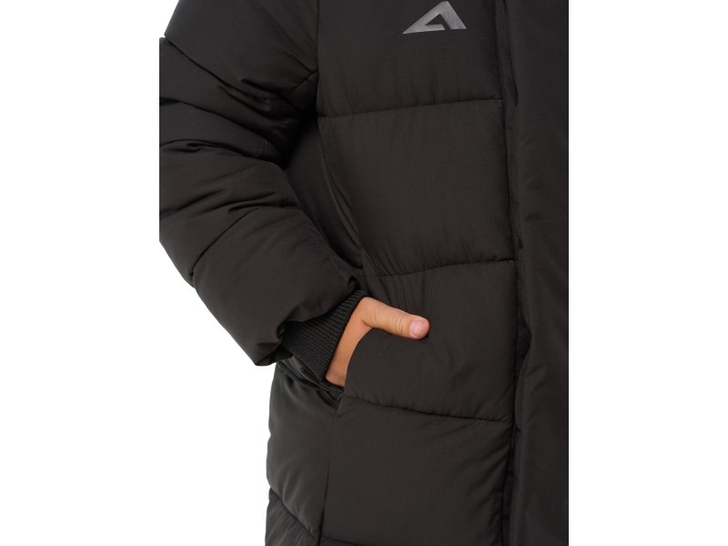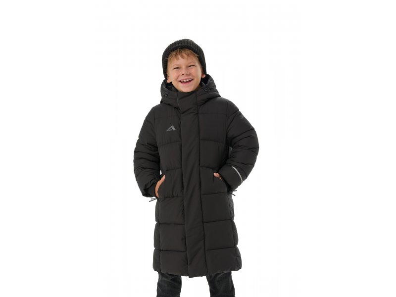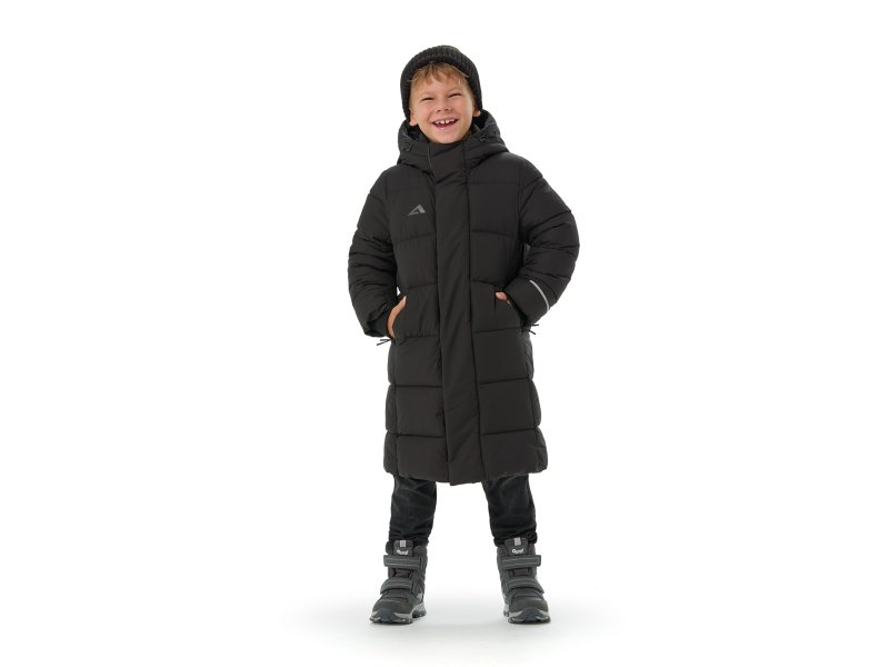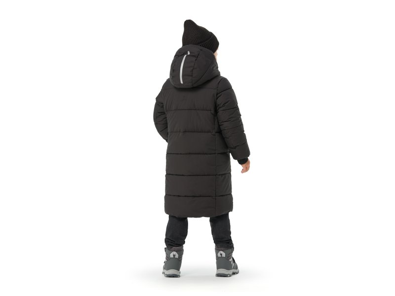 Его прямой силуэт и водоотталкивающая пропитка Teflon обеспечивают комфорт и защиту от непогоды. Мембрана 10к/10к гарантирует тепло и сухость, а искусственный лебяжий пух 300 г/м² согревает даже в сильные морозы. Двойная ветрозащитная планка и трикотажные манжеты защищают от ветра, а несъёмный капюшон с утяжкой и воротник-стойка с утеплителем создают дополнительный комфорт. Удобные боковые карманы и внутренний карман на молнии делают пальто практичным, а световозвращающие элементы обеспечивают безопасность в тёмное время