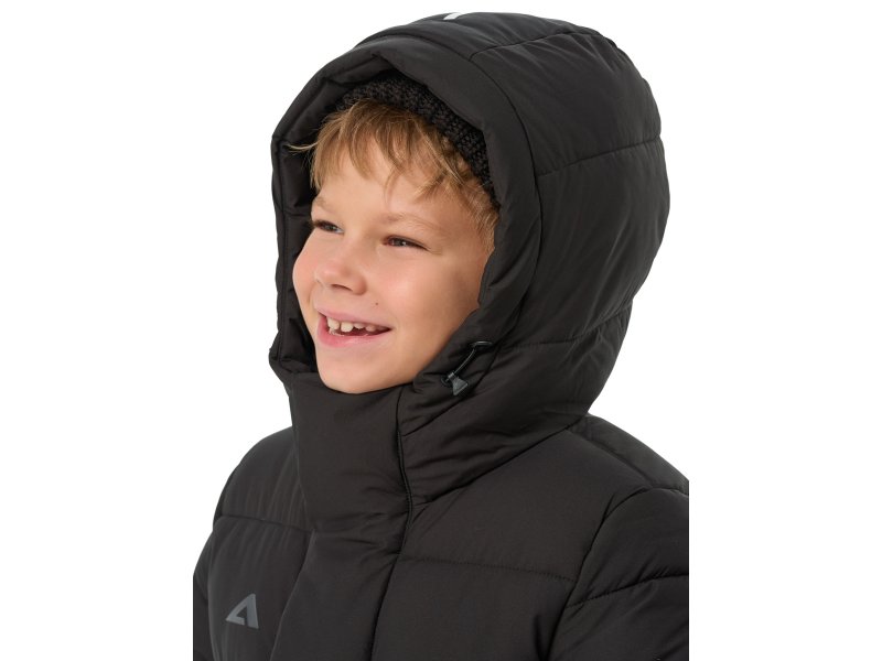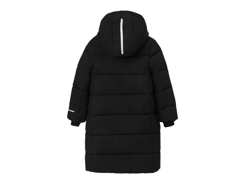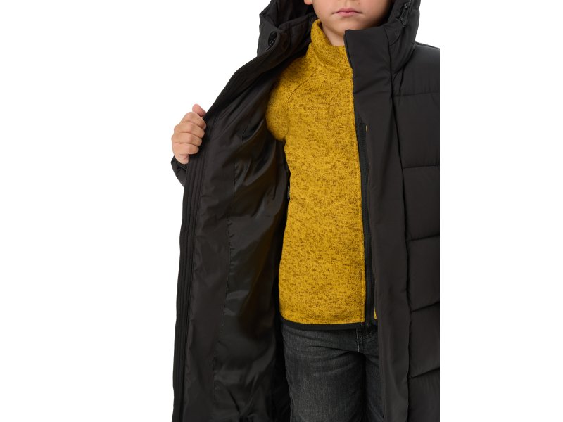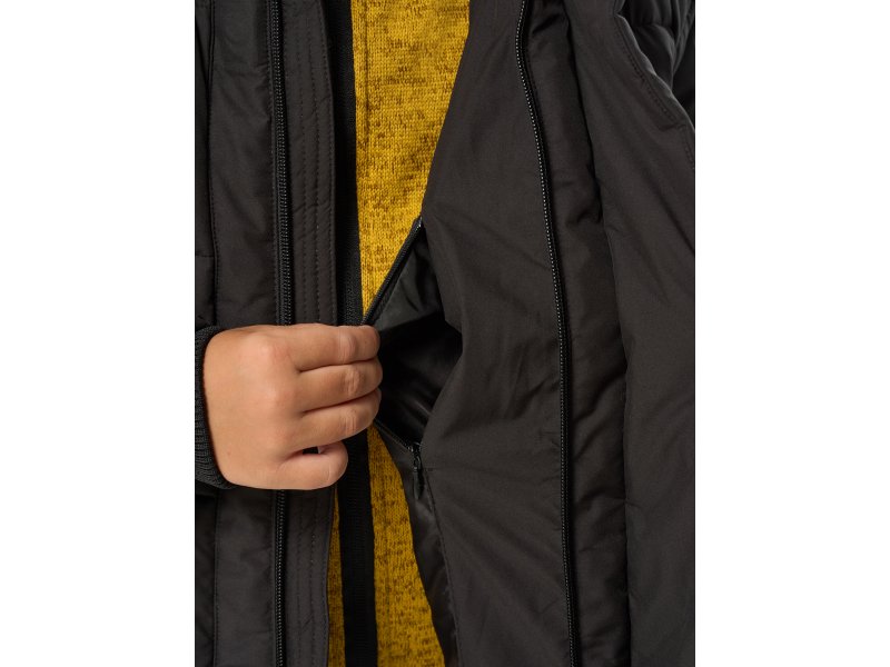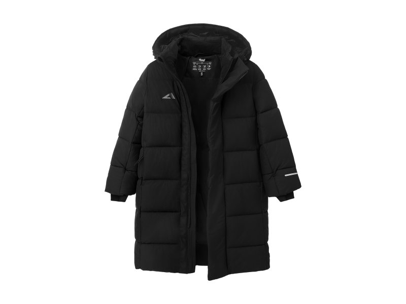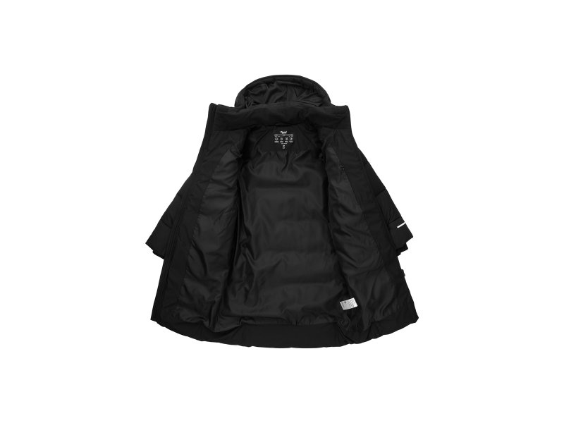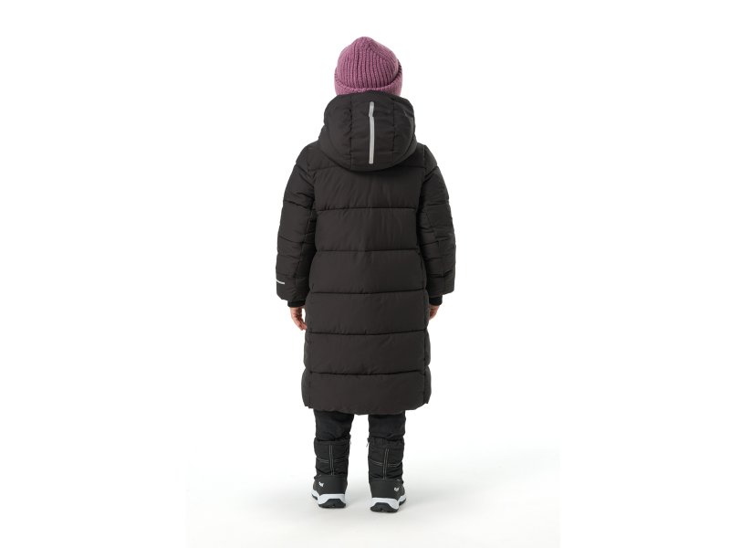 Его прямой силуэт и водоотталкивающая пропитка Teflon обеспечивают комфорт и защиту от непогоды. Мембрана 10к/10к гарантирует тепло и сухость, а искусственный лебяжий пух 300 г/м² согревает даже в сильные морозы. Двойная ветрозащитная планка и трикотажные манжеты защищают от ветра, а несъёмный капюшон с утяжкой и воротник-стойка с утеплителем создают дополнительный комфорт. Удобные боковые карманы и внутренний карман на молнии делают пальто практичным, а световозвращающие элементы обеспечивают безопасность в тёмное время