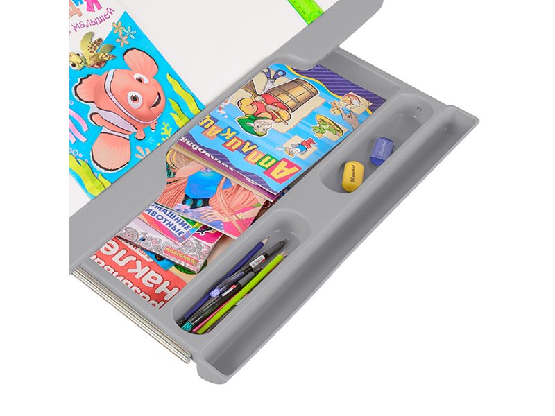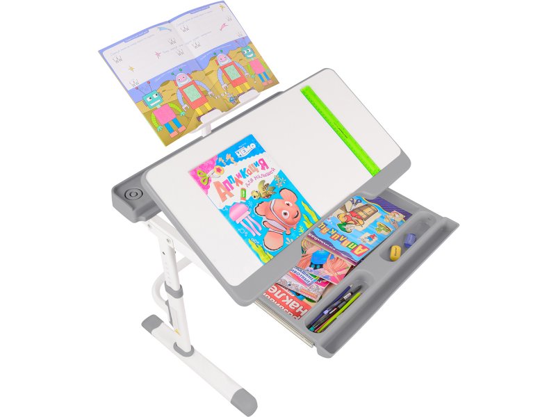 Парта-трансформер Капризун T7 - это эргономичный, с увеличенной рабочей поверхностью, регулируемый по высоте с современным дизайном стол для вашего ребенка. Поверхность учебного стола можно наклонять до 45 ° для удобного чтения и рисования. Таким образом обеспечивается оптимальное расстояние, от которого зависит здоровье органов зрения ребенка.