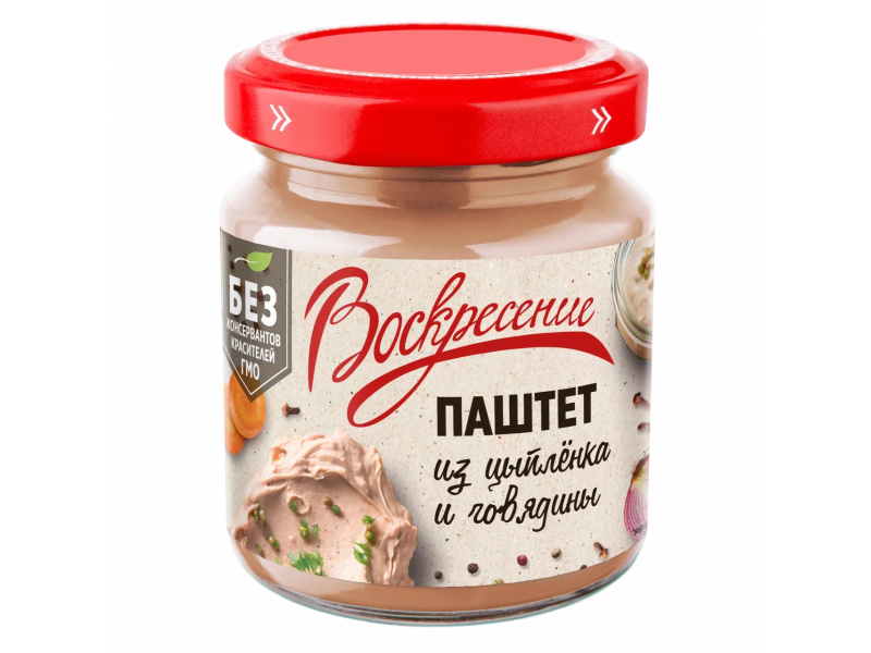 Паштет из цыпленка и говядины торговой марки "Воскресение" станет отличной закуской к праздничному столу.
