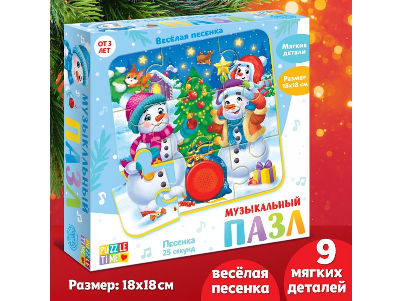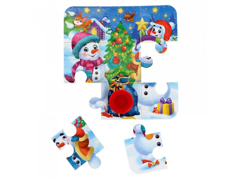 Музыкальный пазл Puzzle Time Снеговики поможет развить мелкую моторику рук, усидчивость, а также научит находить связь между частью и целым.