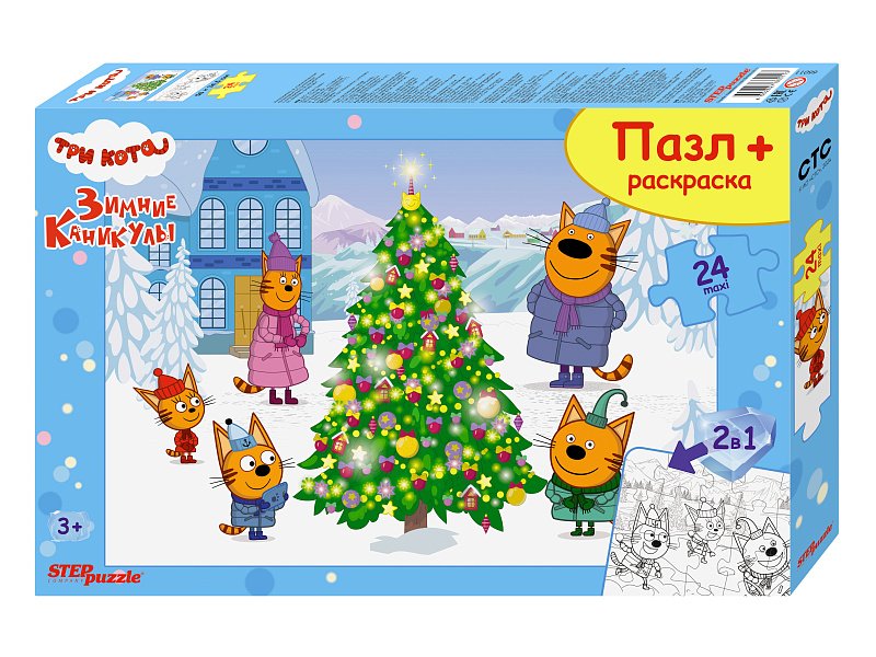 Пазл Step Puzzle Три кота. Зимние каникулы maxi 24 элемента + раскраска