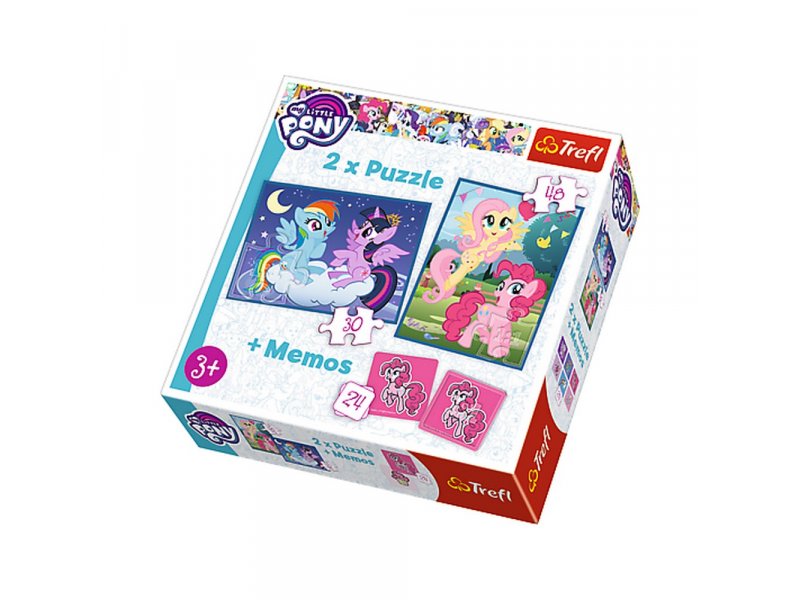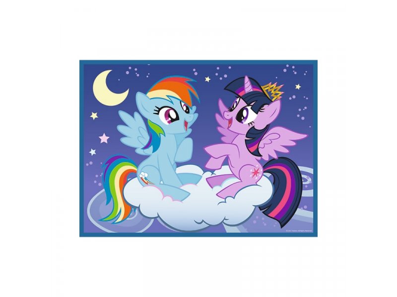 Большой набор из двух пазлов и карточек мемо Дружба это магия подарит малышам много положительных эмоций и полезных навыков! Любимые герои мультсериала My Little Pony привлекут внимание юных непосед. На каждом из пазлов изображены чудесные пони: они отдыхают на облаке лунной ночью и резвятся на солнечной полянке. Детали головоломки из прочного картона надежно соединяются между собой и образуют плотную картинку. Парные карточки мемо с красочными изображениями бабочек, воздушных шариков, звездочек, кексов и любимых персонажей предназначены для веселой игры на развитие памяти и внимательности.
