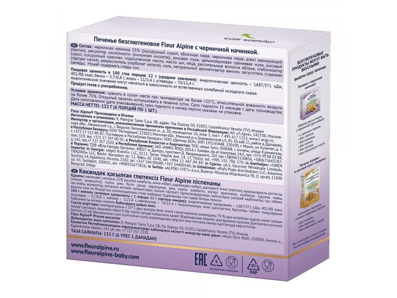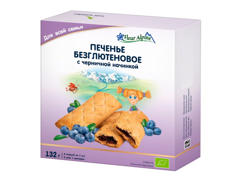 Печенье Fleur Alpine безглютеновое, с черничной начинкой 132 г