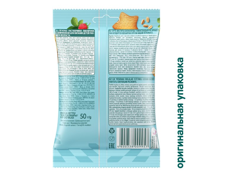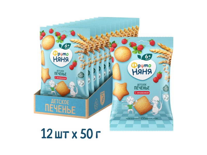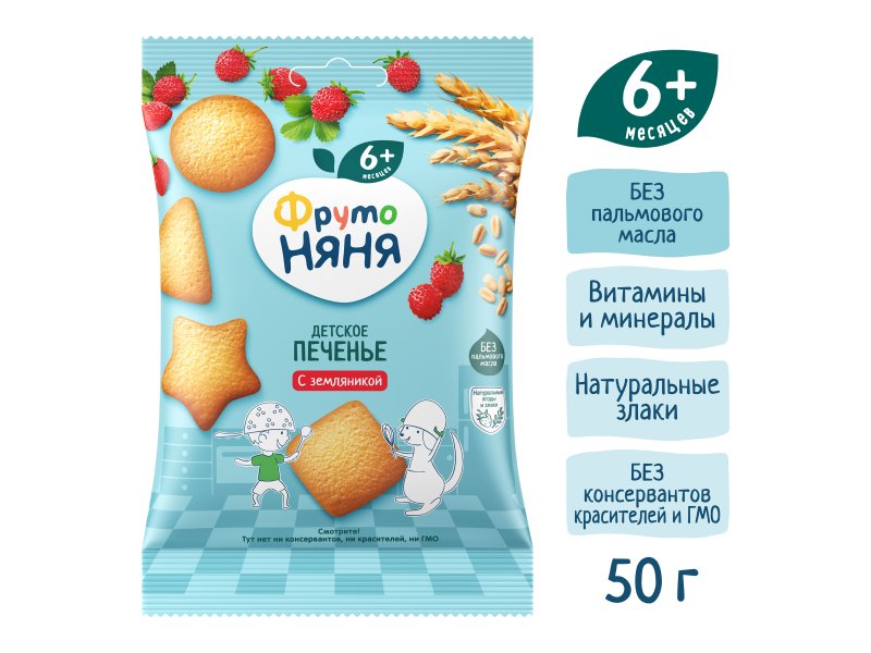 Печенье ФрутоНяня Пшеничное с земляникой, растворимое 50 г
