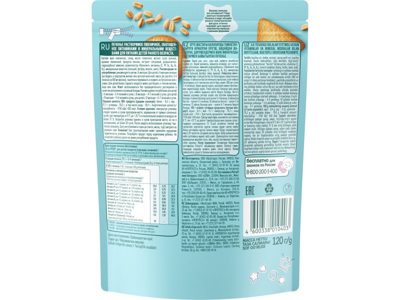 Печенье растворимое ФрутоНяня пшеничное, с витаминами и минеральными веществами,120 г
