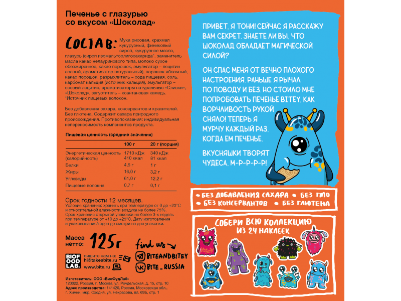 Печенье с шоколадом Take a Bitey Шоколад 125 г