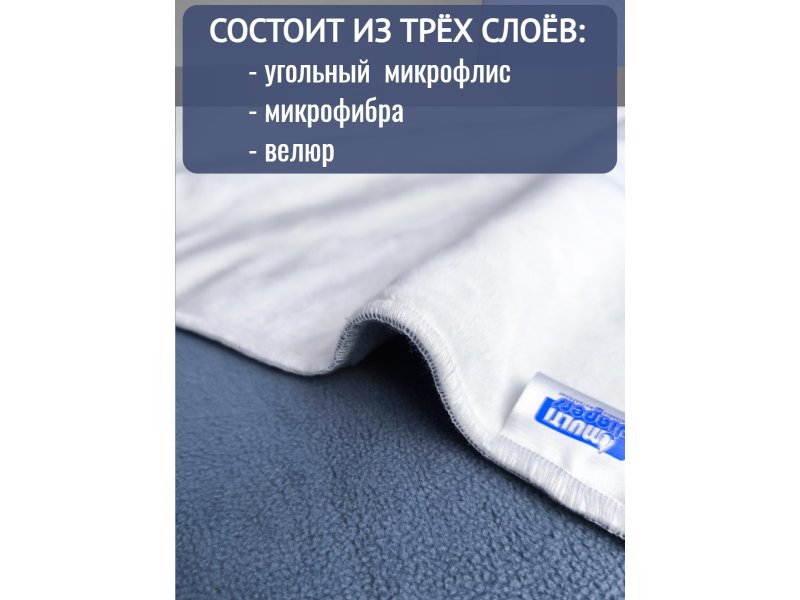Можно использвать с двух сторон, но у каждой свои свойства: серое угольное волокно впитывает влагу, а белый велюр работает как клеенка, защищает от протеканий.