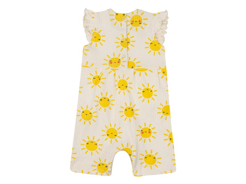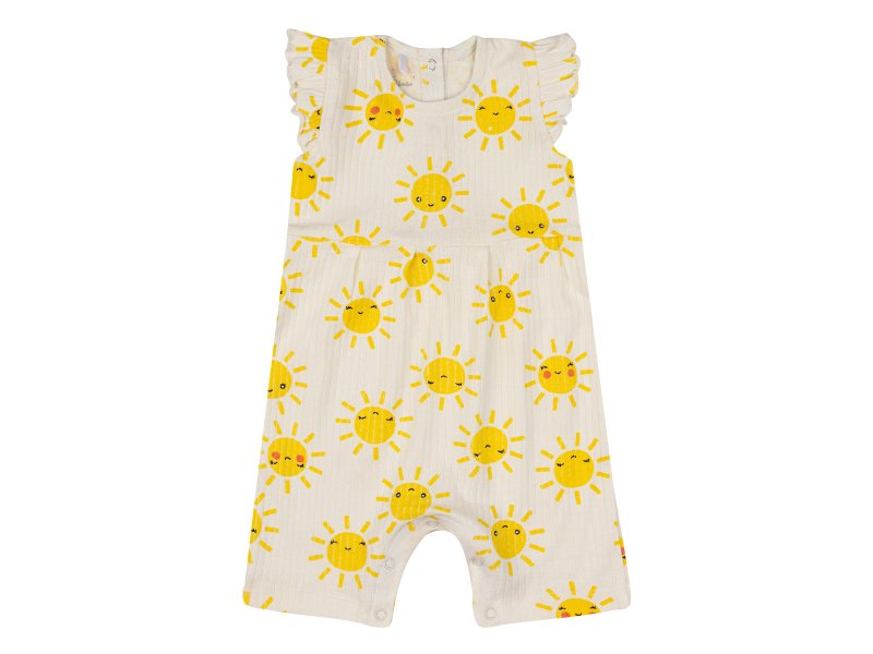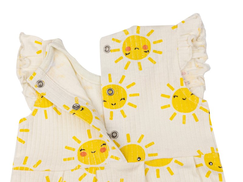 Нежное боди-песочник Palloncino для вашей малышки. Белый цвет с милыми солнышками подарит летнее настроение. Изготовлено из 100% хлопка (интерлок и лапша) – мягкое, дышащее и приятное к телу. Идеально для комфорта новорожденной девочки.