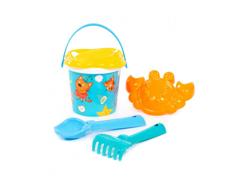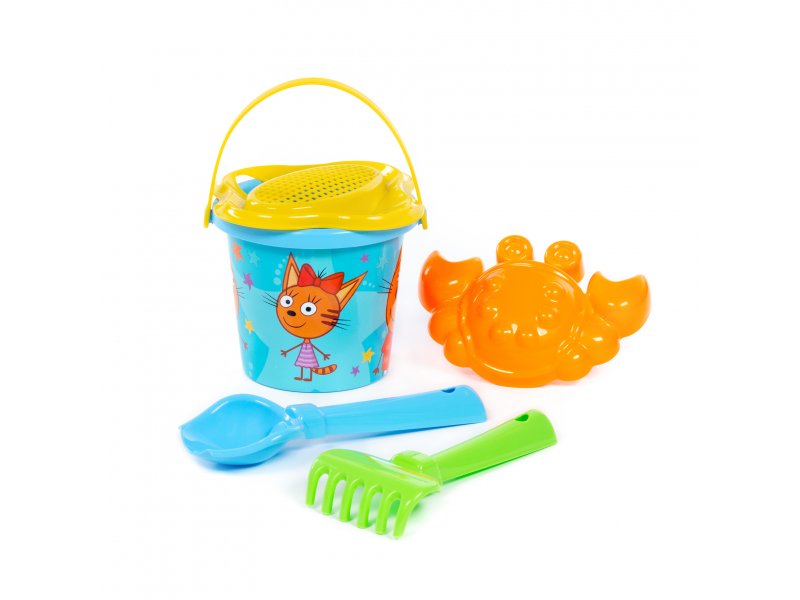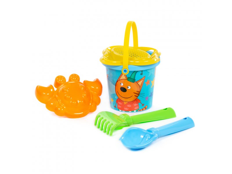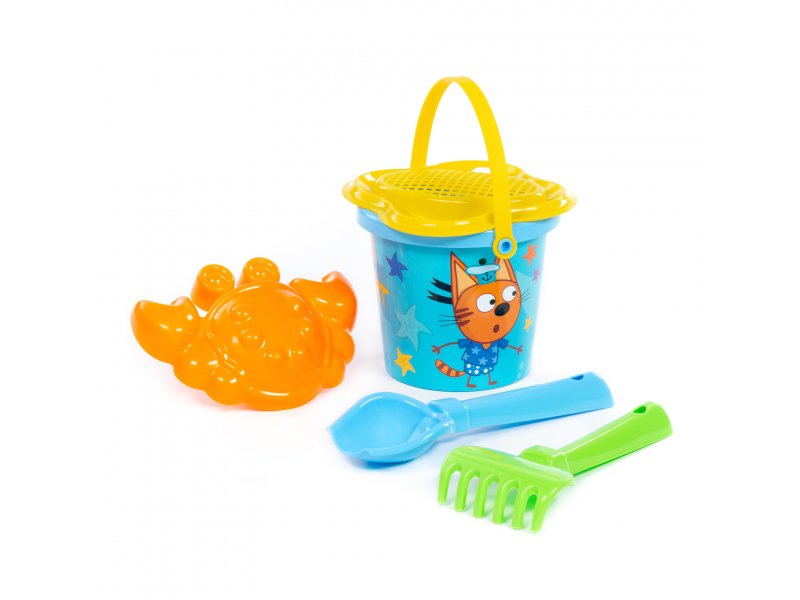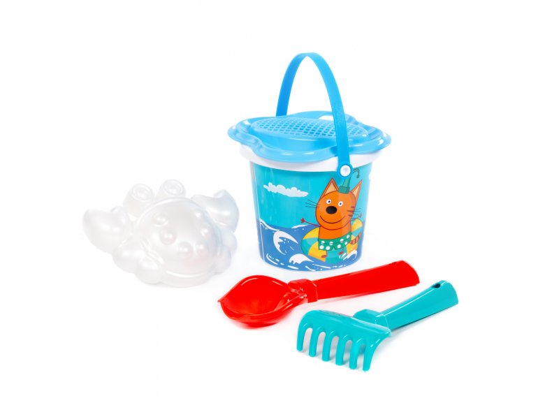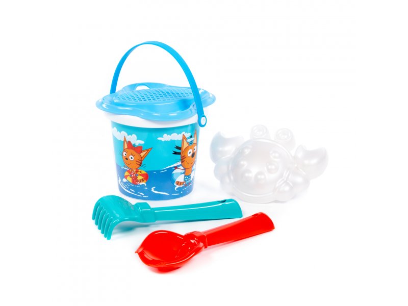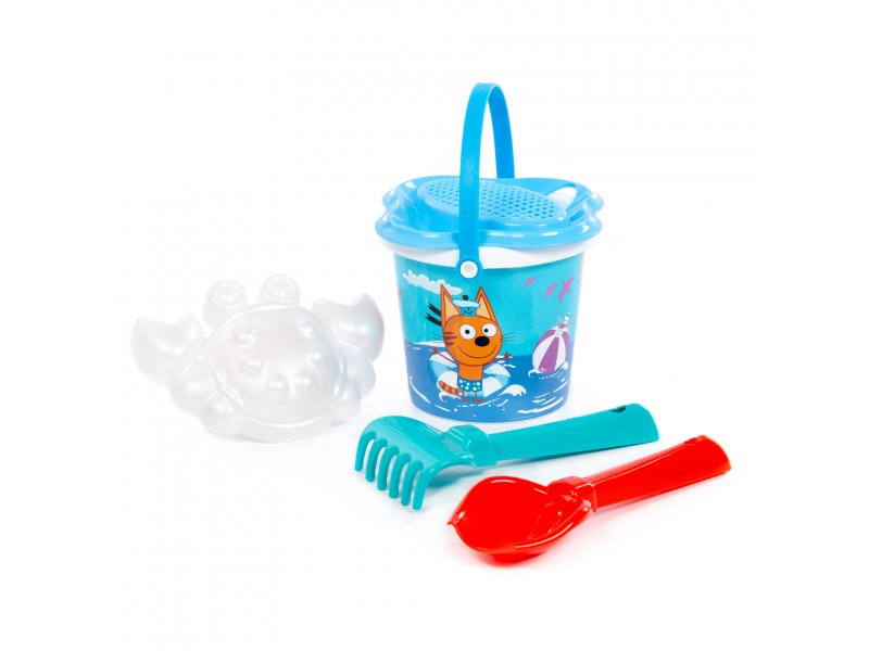 Песочный набор Полесье Три кота и море приключений: ведро, ситечко, совок, грабельки, формочка