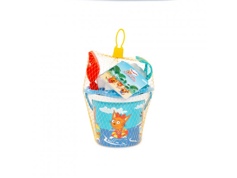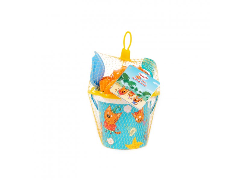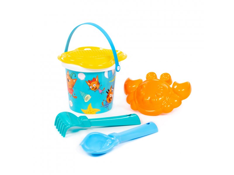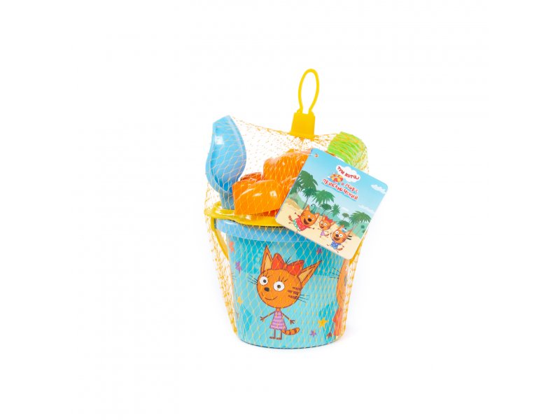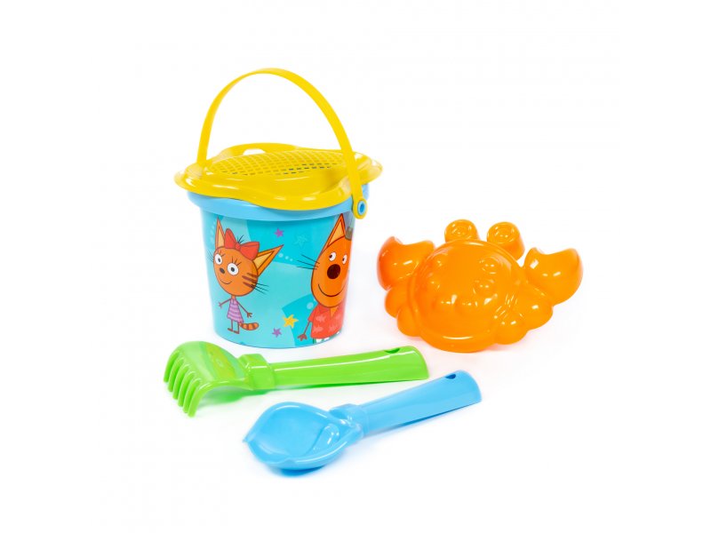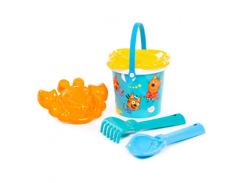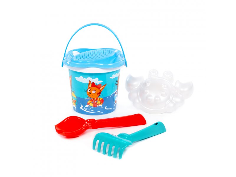 Песочный набор Полесье Три кота и море приключений: ведро, ситечко, совок, грабельки, формочка