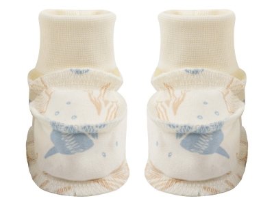 Молочные с очаровательным морским принтом: Погрузитесь в мир приключений с этими милыми пинетками! Светлый молочный оттенок прекрасно сочетается с забавным принтом на морскую тематику – маленькие кораблики, якоря и рыбки подарят вашему малышу радостное настроение и вдохновят на новые открытия.
