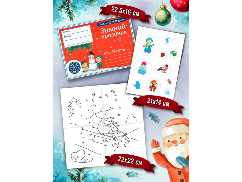 Праздничный конверт, в котором ты найдешь увлекательные головоломки и загадки, наклейки, раскраски, а также бланк письма самому Деду Морозу! Скорее раскрывай конверт и заряжайся новогодним настроением! Размер изделия: 220х220 мм; 148х210 мм. Размер упаковки: 222х158 мм. Изделие предназначено для детей старше 3 лет.