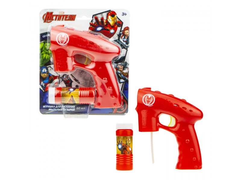 Пистолет для пускания мыльных пузырей 1Toy Железный человек, световые эффекты, 60 мл