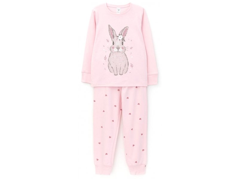 Трикотажный пижамный комплект из натурального хлопка. У джемпера длинные втачные рукава с мягкими манжетами. Брюки с удобным поясом на резинке и эластичными манжетами.